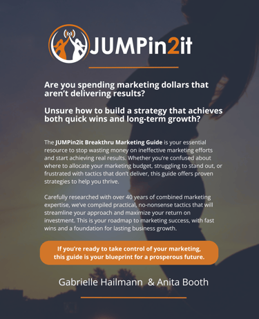 Anita Booth is a published author with a passion for sharing bold ideas and practical strategies. Her book, JUMPin2it: The Breakthru Marketing Guide, offers an energetic roadmap for entrepreneurs and marketers ready to take their brand to the next level.